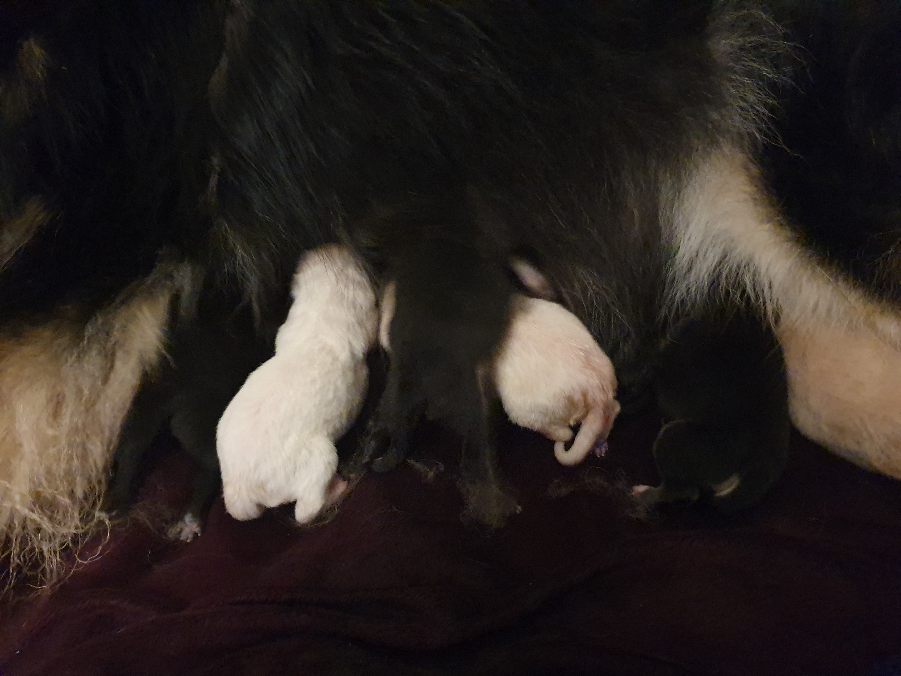 Falli har idag den 5 januari 2020 fått sin andra valpkull. Det blev 7 valpar, 4 tikar och 3 hanar i färgerna creme och svart med tecken.